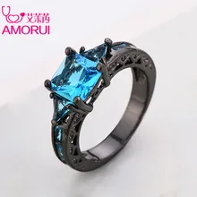 AliExpress.com Product - AMORUI Fashion Wedding Hollow Rings for Women Vintage Blue CZ Stone Ring Bague Femme Black Gold Color Engagement Ring Anillos